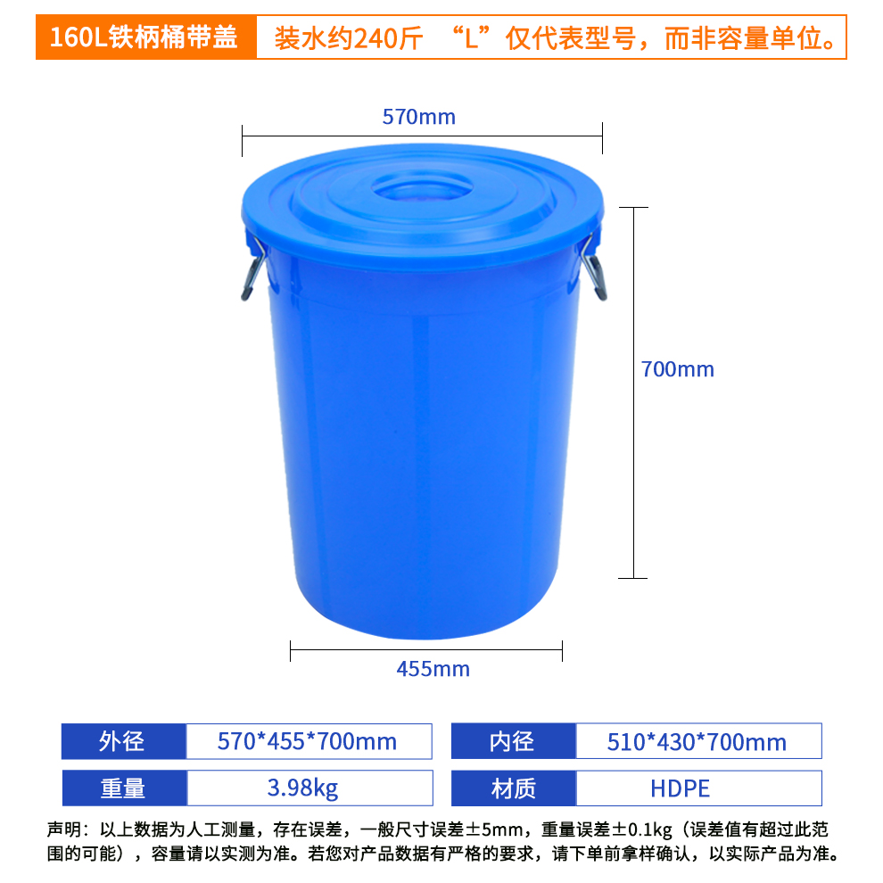160L industrial plastic bucket with lid | 570mm | 455mm | 700mm | White/blue | HDPE | 160L | 3.98KG | WG5160ST-2 |